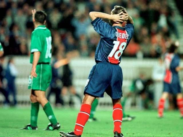 22岁便成为法甲金靴,按照常理,下一步应该是披上国家队战袍,在世界杯舞台上闪耀。然而,韦德克却遭遇了“煮熟的鸭子飞了”的无奈——他所在的法国队,在1994年美国世界杯预选赛最后一场比赛中被保加利亚绝杀,耻辱性地无缘决赛圈。韦德克的世界杯首秀,就这样胎死腹中。